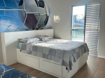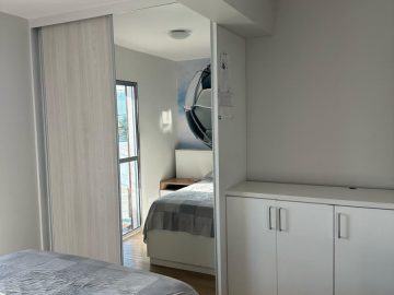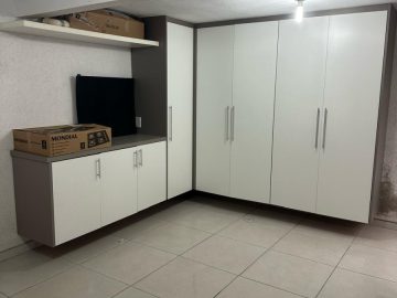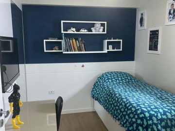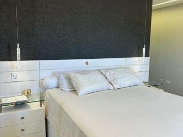 Na negociação estão inclusos diversos móveis planejados, como cabeceira e mesas de cabeceira, cômoda, cozinha completa em estilo provençal, gabinete de banheiro, painel de TV, guarda-roupa de solteiro, cristaleira, rack, sapateira, bancada, cabeceira com baú, gabinete da churrasqueira e armários altos na lavanderia, entre outros itens.
