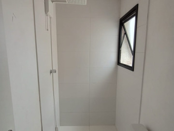 Banheiro social com acabamentos de alto padrão e muito bem planejado.